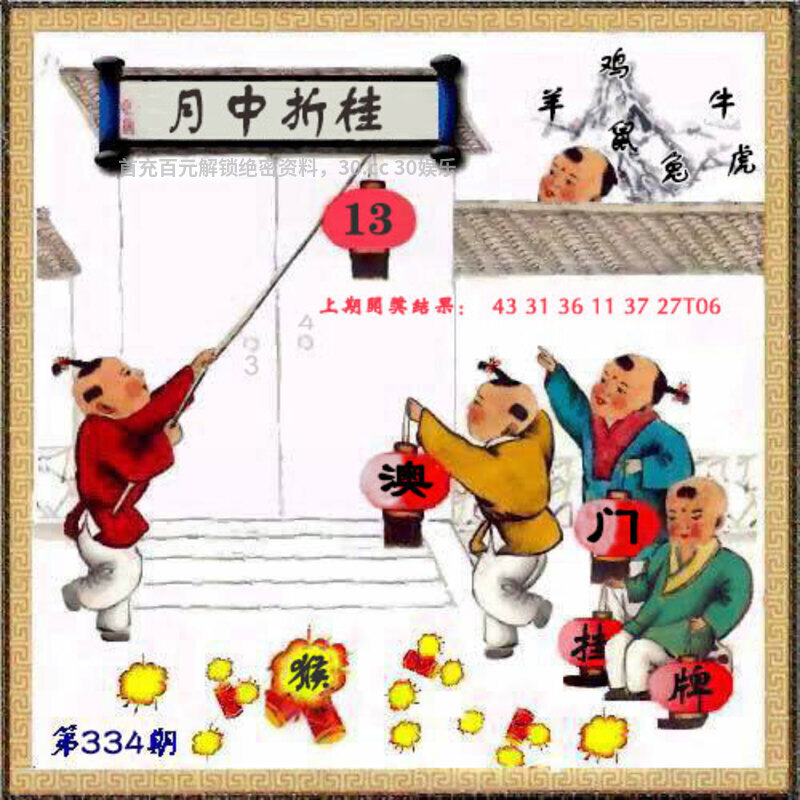 | 334期:挂牌《月中折桂》 解释:字面指在月亮中折取桂树枝,后比喻科举及第。 解:后比喻科举及第,解吉肖马羊蛇兔龙鸡,挂:13爆:猴。 七肖:猴蛇兔马羊龙鸡 |